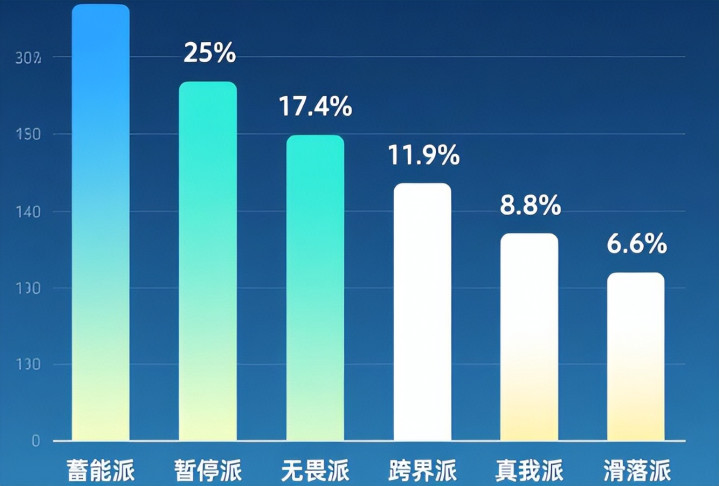 然后是“无畏派”,或者说“佛系派”,占17.4%,主动选择暂时“躺平”,放弃扩张、专注精神消费。这群人其实是用执着于当下的方式,缓冲对未来的恐惧。